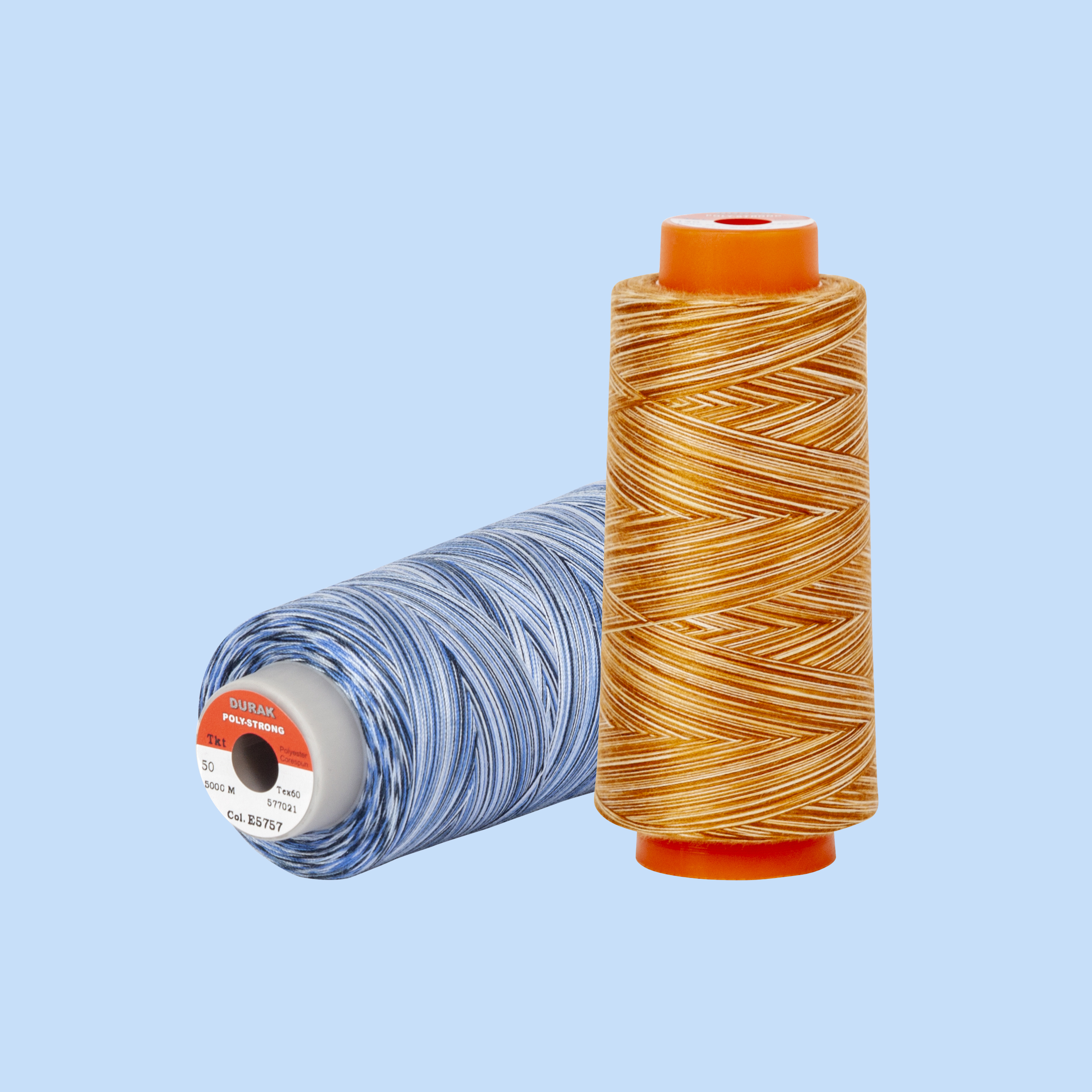 DURAK Poly-Strong PP Multicolor® is a multicolor sewing thread made from 100% polyester. The thread is injection-dyed with up to four different colors to create a multi-colored and attractive effect. Thanks to finishing processes that enhance sewing performance, its regular structure, and optimum fuzziness level, it adds an extra special look to garments with various styles, from light tones to rainbow contrast colors. DURAK Poly-Strong PP® Multicolor thread improves color harmony and sewing quality in your product, increasing production efficiency.